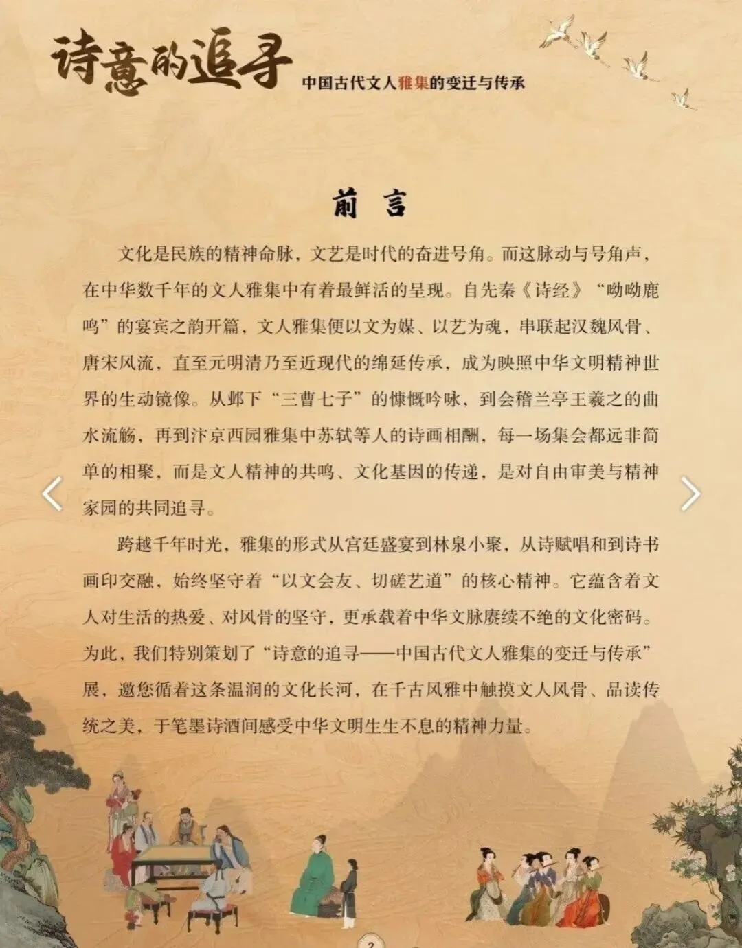 本期,我们特别策划了“诗意的追寻——中国古代文人雅集的变迁与传承”展,邀您循着这条温润的文化长河,在千古风雅中触摸文人风骨、品读传统之美,于笔墨诗酒间感受中华文明生生不息的精神力量。