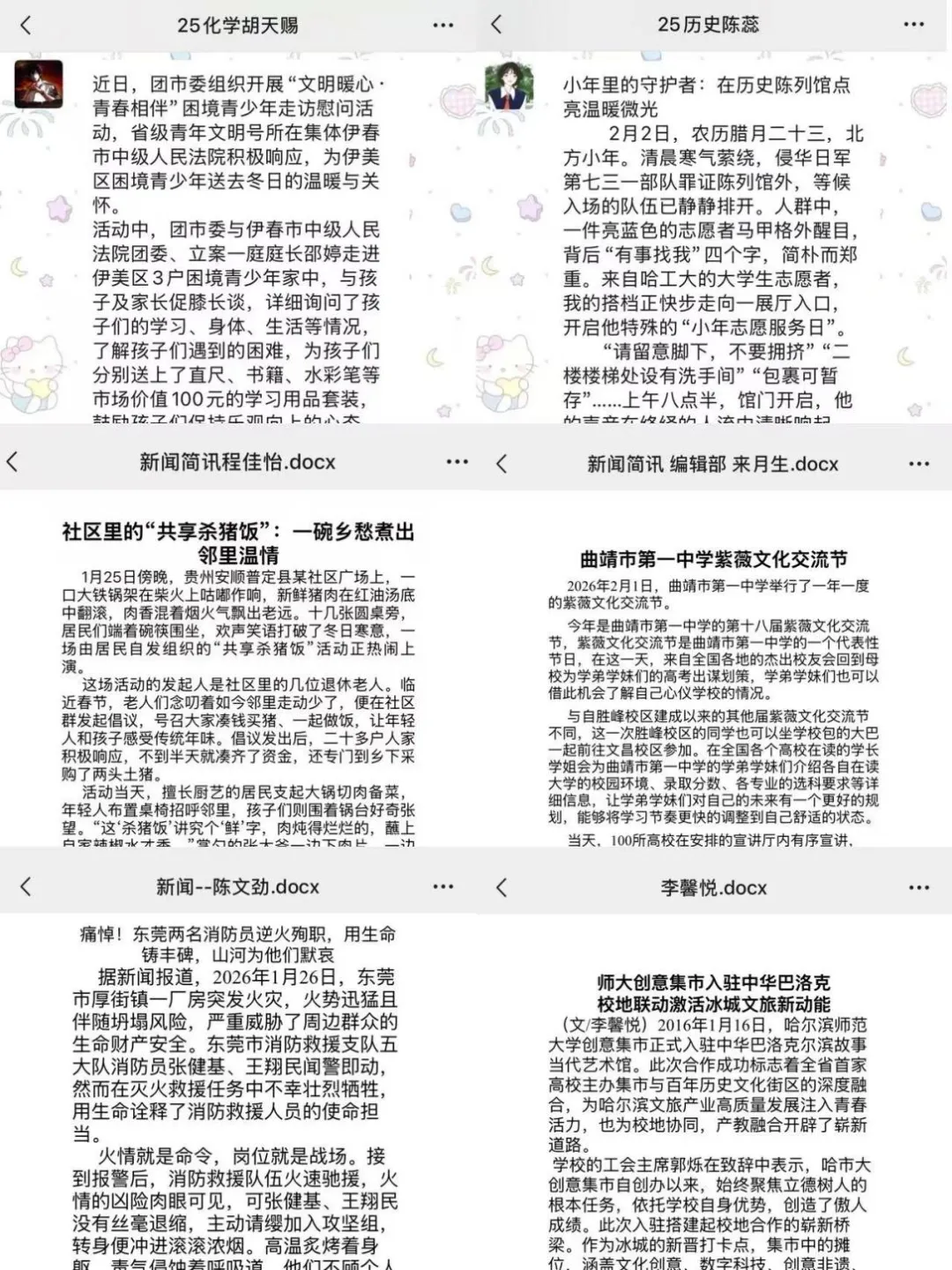 在背诵与写作考核中,新成员已能熟练背诵讲解词,提交的新闻简讯多数要素完整、逻辑清晰,体现了对文体要点的基本把握。尽管部分作品在素材切入点、格式规范或语言精练度上仍有提升空间,但成员们扎实的写作基础和积极的学习态度,为后续的能力精进奠定了良好基础。