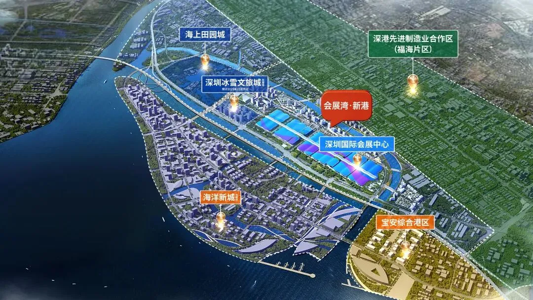 于粤港澳大湾区“黄金内湾”顶点,深圳市委市政府高规格规划约29.42平方公里会展新城。会展中心+冰雪文旅+海洋新城+深港先进制造四大产业引擎,打造深圳在粤港澳大湾区的战略制高点。▷➤引擎一
