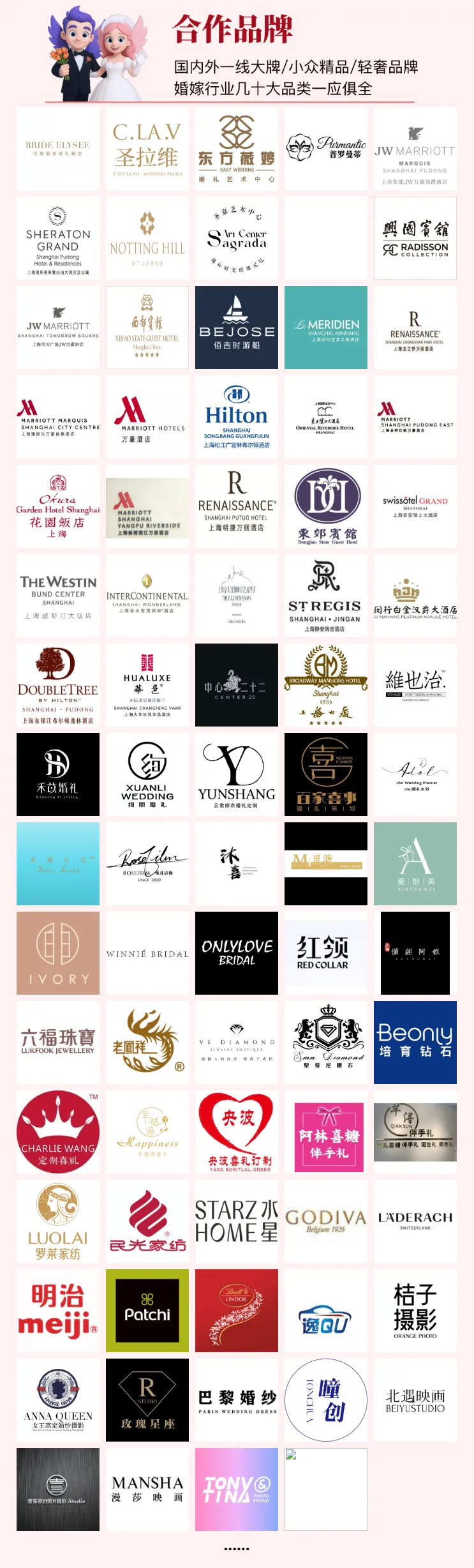 上海婚博会展出品类包括:婚纱照、婚宴酒店、婚庆婚礼策划、四大金刚、婚戒三金五金、婚纱礼服、新郎西装、喜糖喜酒伴手礼、新婚家纺、婚车租赁……全都有,现场挑选、谈单、订单一站式全搞定!