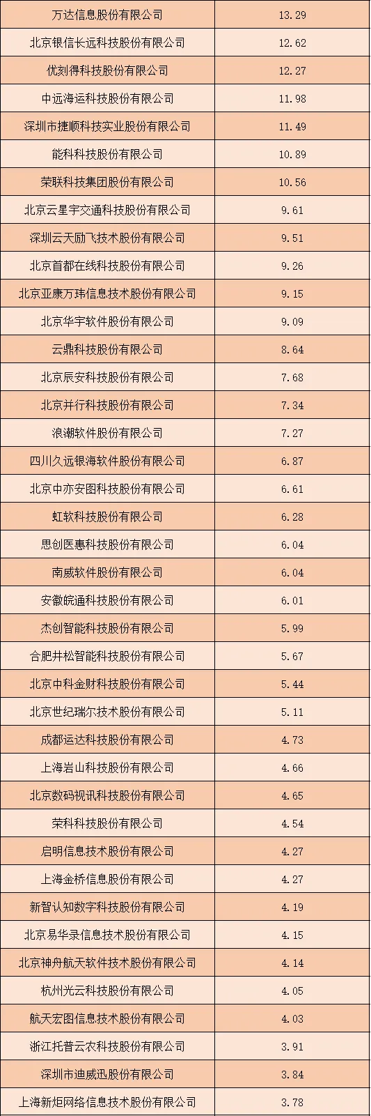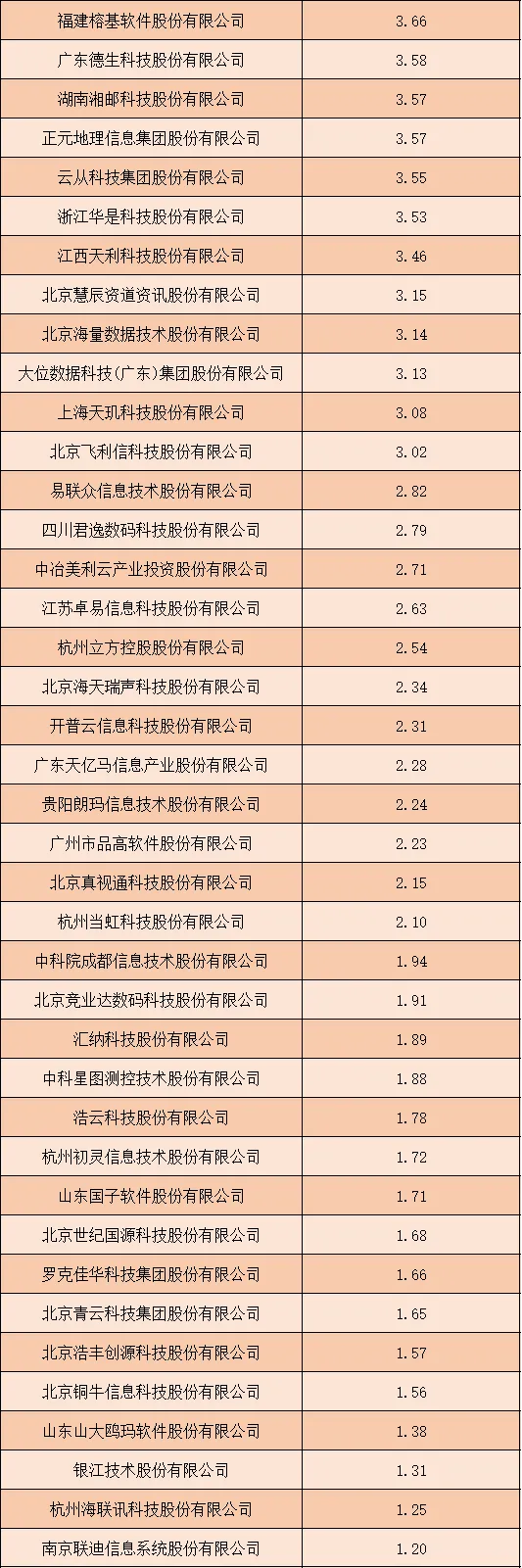2025年1-3季度上榜的IT服务行业上市公司中,尾部企业数量占据绝对多数,且营收规模呈现出明显的阶梯式递减特征。营收在50亿元以下的企业成为行业主流,从博彦科技股份有限公司的49.71亿元开始,企业营收逐步下降,其中10亿元至30亿元区间的企业数量最多,涵盖了航天信息股份有限公司、网宿科技股份有限公司、中国软件与技术服务股份有限公司等大批企业。随着营收门槛降低,企业数量进一步增加,营收在1亿元至10亿元区间的企业构成了行业的基础圈层,而营收低于1亿元的企业共有10家,其中南京云创大数据科技股份有限公司以0.29亿元的营收位列榜单最后。尾部企业的大量存在,反映出中国IT服务行业市场化程度高、细分赛道丰富的特点,同时也体现出行业中小规模企业竞争激烈的现状。