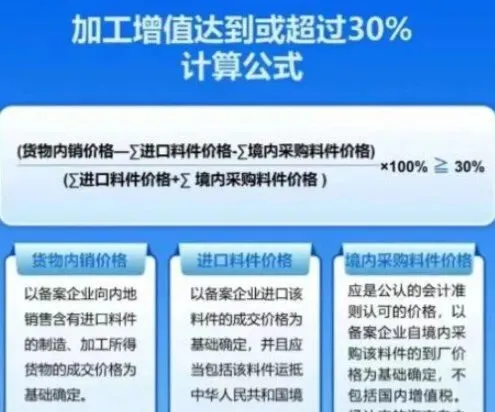 增值率 = (加工后成品价值 - 原料成本) ÷ 原料成本 × 100%只要 ≥30%,就能享受免关税