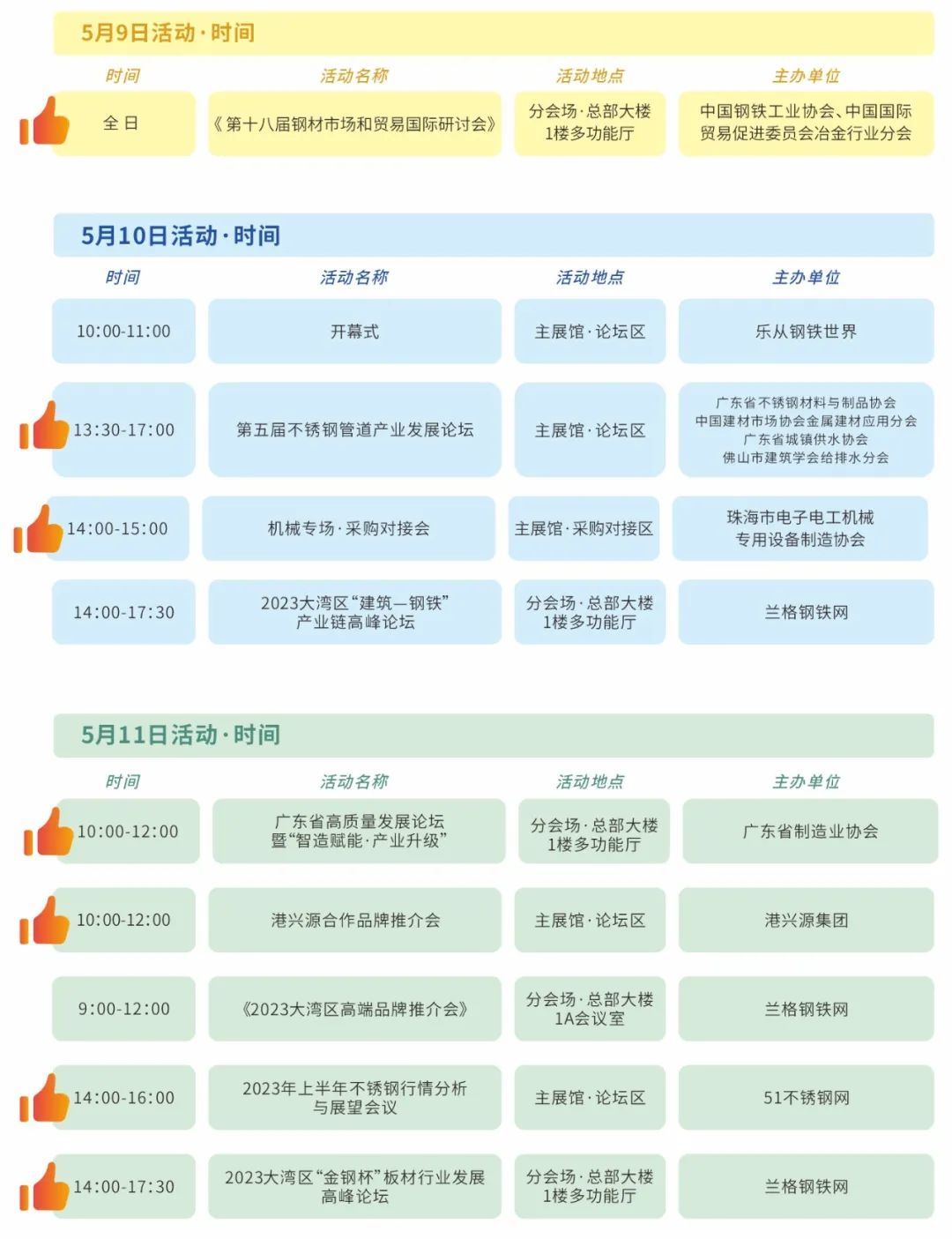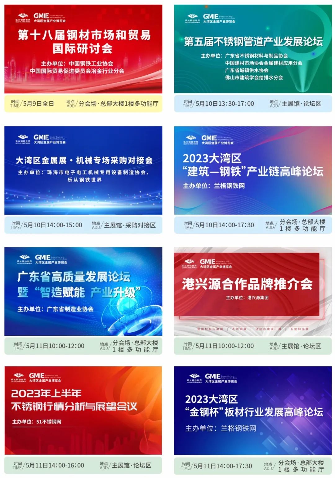 大湾区金属产业博览会携手中国钢铁工业协会、广东省不锈钢材料与制品协会、广东省制造业协会、51不锈钢网、兰格钢铁网等国内商协会、行业平台,展会期间举办多场重磅论坛、行业活动、供需采购对接会等,覆盖钢材、机械、建筑、制造业等领域,特邀行业顶流大咖,聚焦行业前沿趋势,共商市场全新机遇。