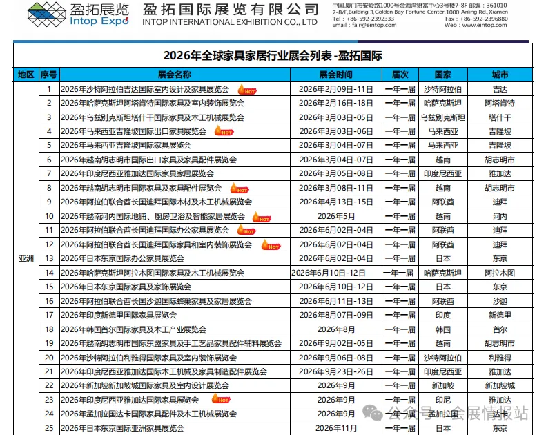 外贸人速藏!? 为解决大家找展难、选展乱、对接低效的痛点,我们整理了行业头部展览公司的全品类展会完整列表,覆盖餐饮酒店、能源、汽车后市场、礼品、纺织珠宝等核心赛道,从国内主场到海外布局,从专业垂直展到全产业链生态展,一手资源全汇总,帮你精准匹配参展、拓客、对接需求,省时省力找高价值展会!本次整理的展会列表,聚焦MIE中东展览集团、东方益达、盈拓、去展网、米奥兰特、等行业头部展览公司,覆盖建材家居、能源石化、新能源汽车、礼品家居、纺织珠宝、孕婴童、等 10 + 核心产业,展会信息包含「举办时间 / 地点 / 展品范围 / 核心亮点 」四大维度,铺开海外重点布局展,适配传统外贸企业、跨境电商卖家、产业供应链企业、品牌方等不同主体的参展 / 对接需求。此系列列表堪称会展 / 外贸人的「找展工具书」,建议收藏 + 转发给团队小伙伴,避免错过优质展会资源!若需展位精准对接、展会定制咨询,或想了解某类展会的参展攻略、采购商资源,可直接私信我们;也欢迎在评论区留言你最关注的行业 / 区域展会,我们会优先更新对应干货~
