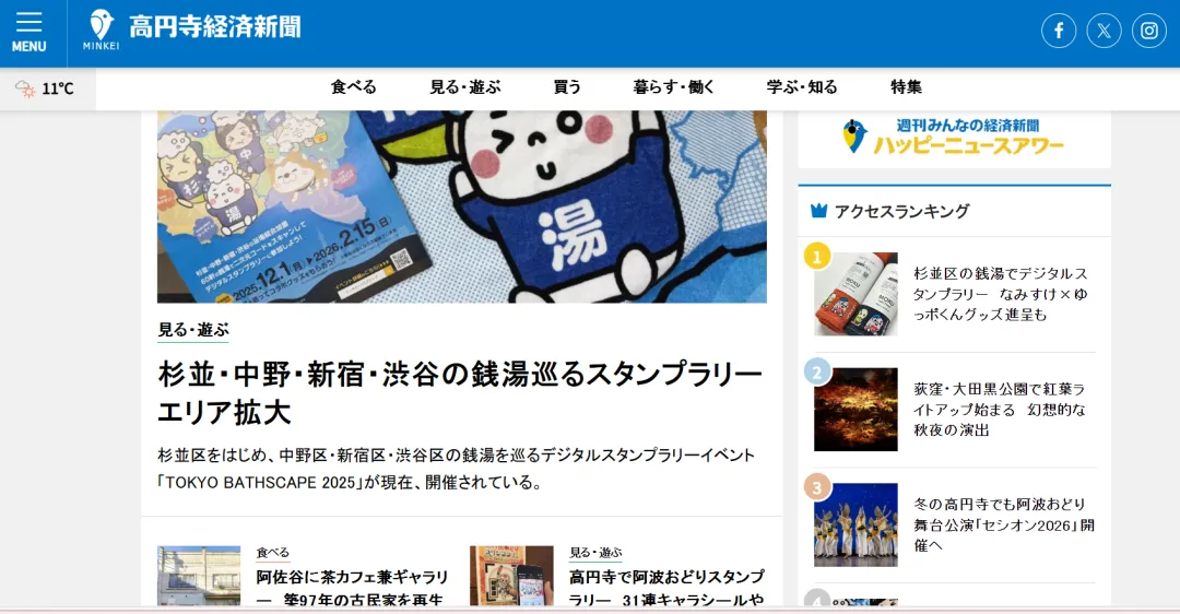 高円寺经济新闻是一个面向广域高円寺地区的本地新闻网站,主要报道该区域的商业、社会、消费、文化活动等内容(类似地方生活和经济新闻类媒体)。