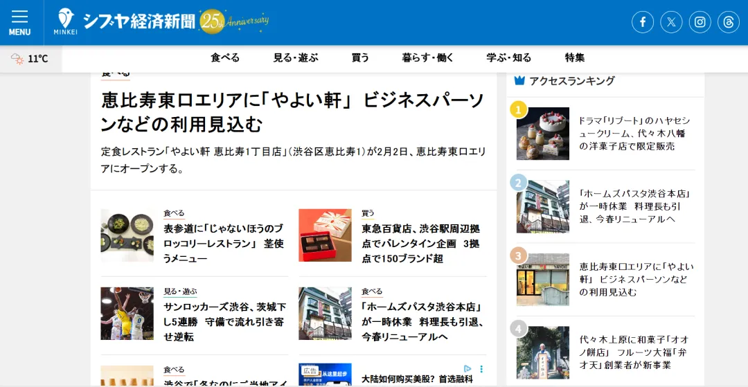シブヤ经济新闻是一个专注于东京涉谷区及周边地区本地商业、文化和生活资讯的网络新闻媒体。