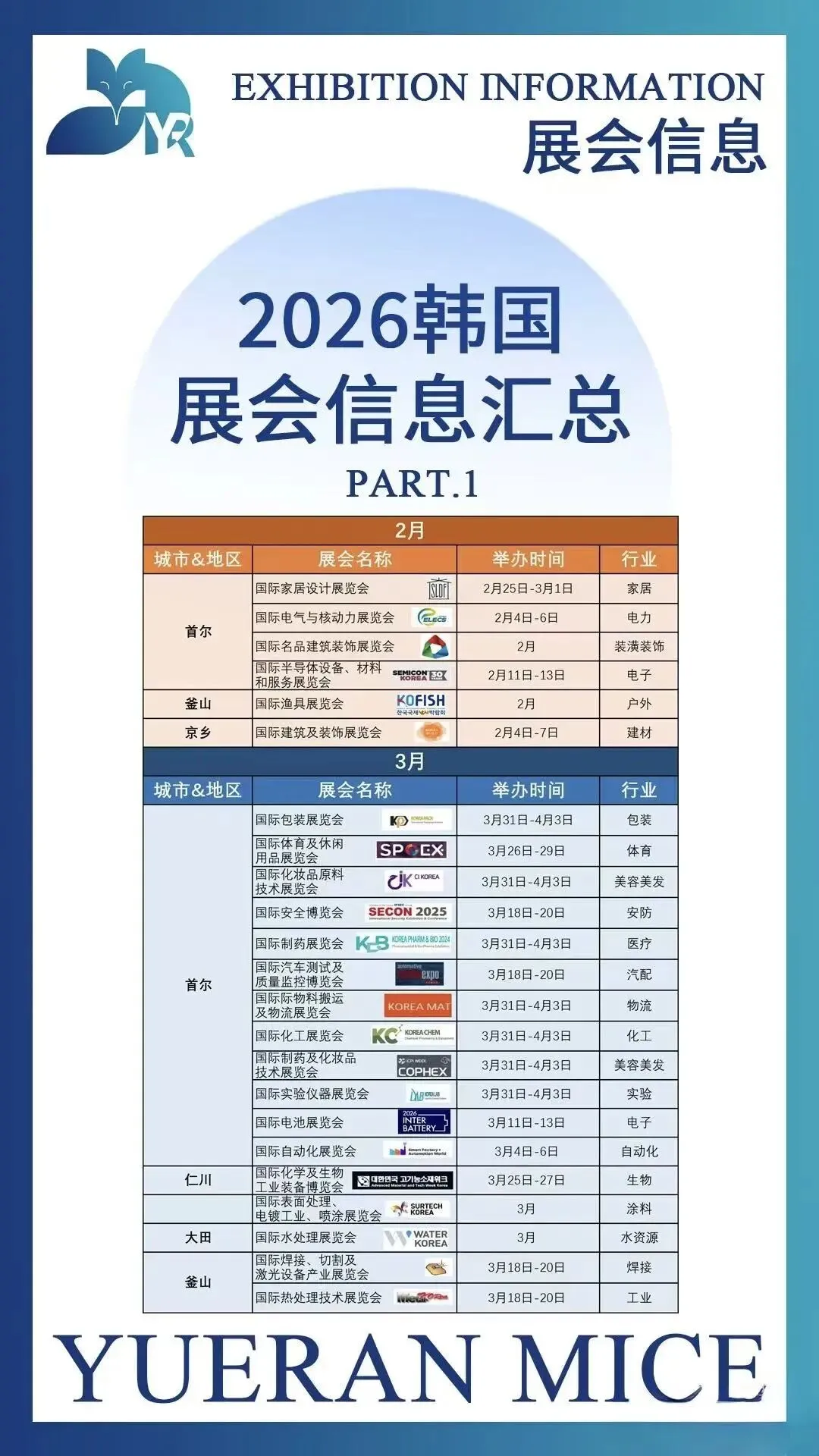 2026年2月、3月韩国展会信息汇总