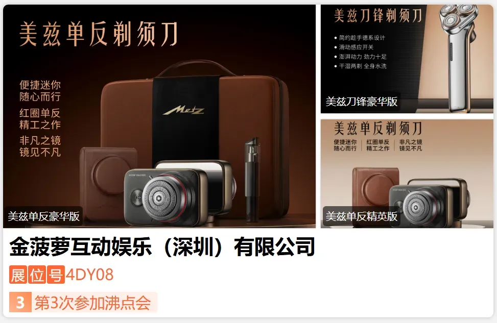 目前主推集团品牌METZ“美兹剃须刀”,创维集团旗下收购的德系高端品牌。目前京东,天猫,苏宁,视频号,抖音,小红书等多平台都有旗舰店,明星马天宇,李诞推荐种草,私域,自媒体,社群团购,微店等多头部上架,月销8000+台!!检测报告,资质证书,授权,快团群接龙链接,自媒体推文,产品笔记齐全,欢迎对接咨询上架!!!-展位号:4DC01-