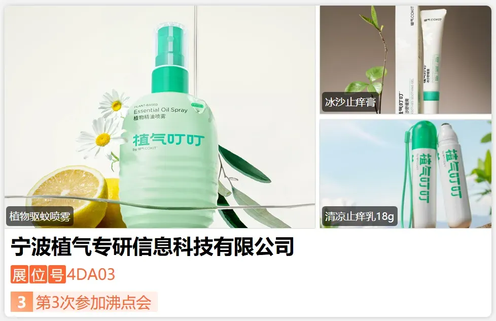植气叮叮专注于植物驱蚊,是对自然的尊重与热爱,是对健康生活的不懈追求,更是对每一位消费者的责任与承诺。植气叮叮摒弃化学合成驱蚊剂中常见的有毒化学成分,类似避蚊胺(DEET)、驱蚊酯等这类可能刺激皮肤、危害健康的成分。这使得我们的驱蚊产品对敏感人群,如婴幼儿,老人和宠物家庭,都极为友好。-展位号:4DB15-