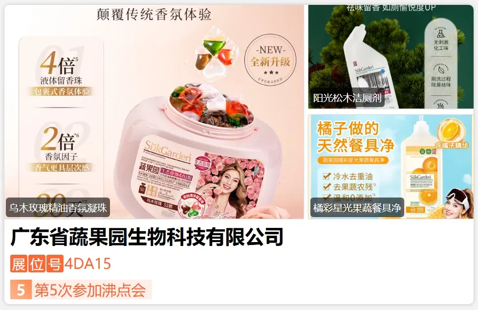 蔬果园主打高端生态家清,携手全球香精巨头奇华顿,致力打造“心价比、颜价比、性价比”的全网爆品,成功跻身天猫抖音家清***品牌,现已签约国际巨星谷爱凌成为蔬果园品牌形象代言人,代言广告已携手分众传媒全面投放我们是一个全渠道发展的家清新锐品牌。线上京东、天猫、抖音、唯品会、拼多多实现自营,线下进驻全国各大连锁KA,如永旺、大润发、永辉、Ole、盒马等等。-展位号:4DD15-