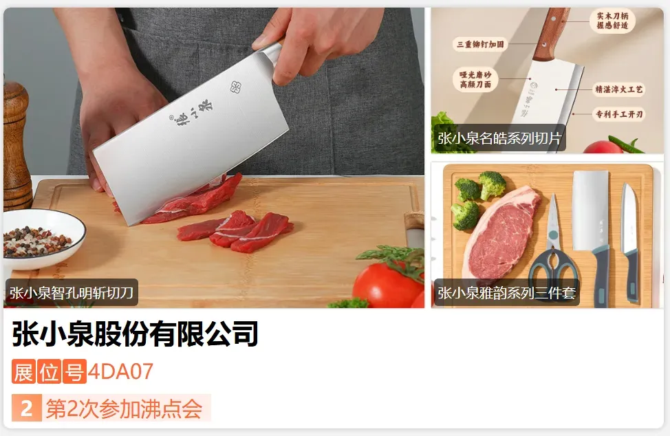 · 1994年:品牌创立,初期以传统手工锻造厨具为主,专注于菜刀、锅具等基础厨房工具。· 2000年代:引进现代化生产线,扩大产品线,涵盖不锈钢锅具、刀具、厨房小工具等,并注重技术研发与设计创新。· 2010年至今:品牌加速升级,结合市场需求推出健康环保材质(如无涂层铁锅、抗菌刀具)的产品,并拓展线上销售渠道,覆盖国内外市场。-展位号:4DJ21-
