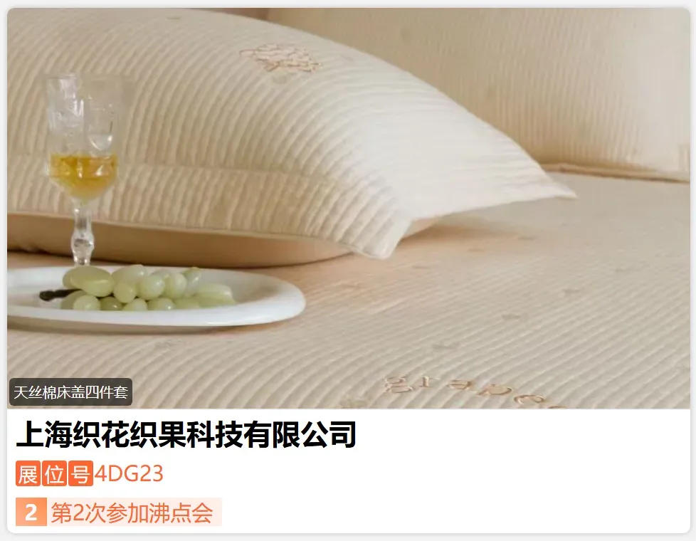 南通麦上纺织科技有限公司是南通头部生产工厂,位于南通市叠石桥金川大道,工厂面积近2万平方,展厅近千平。工厂拥有较强的研发和品控能力,是诸多***品牌和线下大型超市的合作伙伴。四件套床品、被芯的生产能力位于南通生产型工厂前列。欢迎各渠道方莅临南通工厂考察验厂。业务联系人刘女士,电话/微信:***,期待为您服务。-展位号:4DF22-