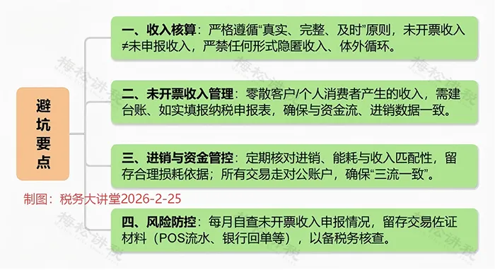 说白了,就是钻了“个人消费者不要发票”的空子,觉得没人要票,就可以少报未开票收入!