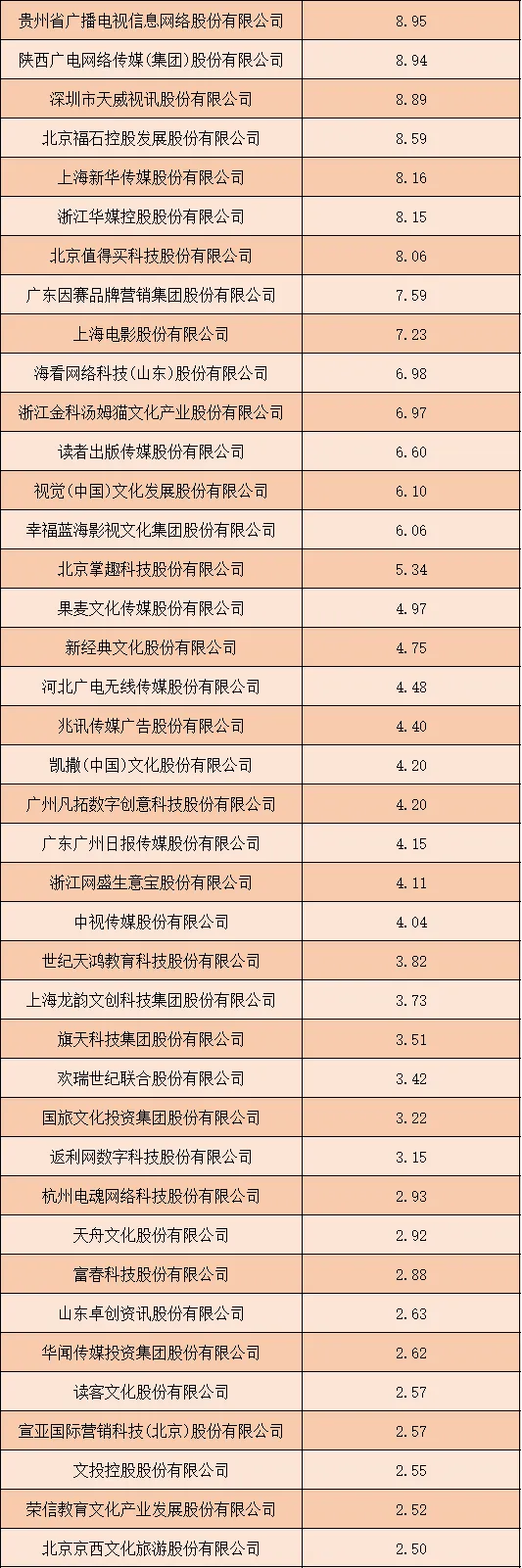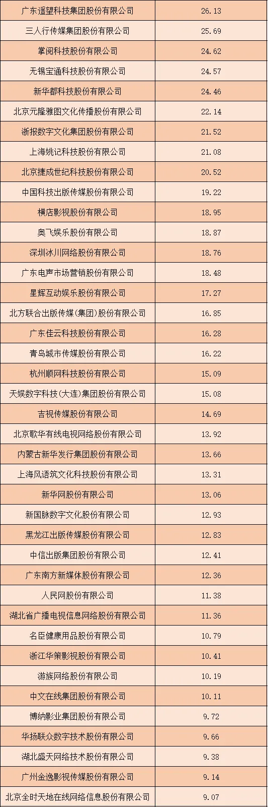 一、2025年1-3季度中国传媒行业上市公司企业排名分析