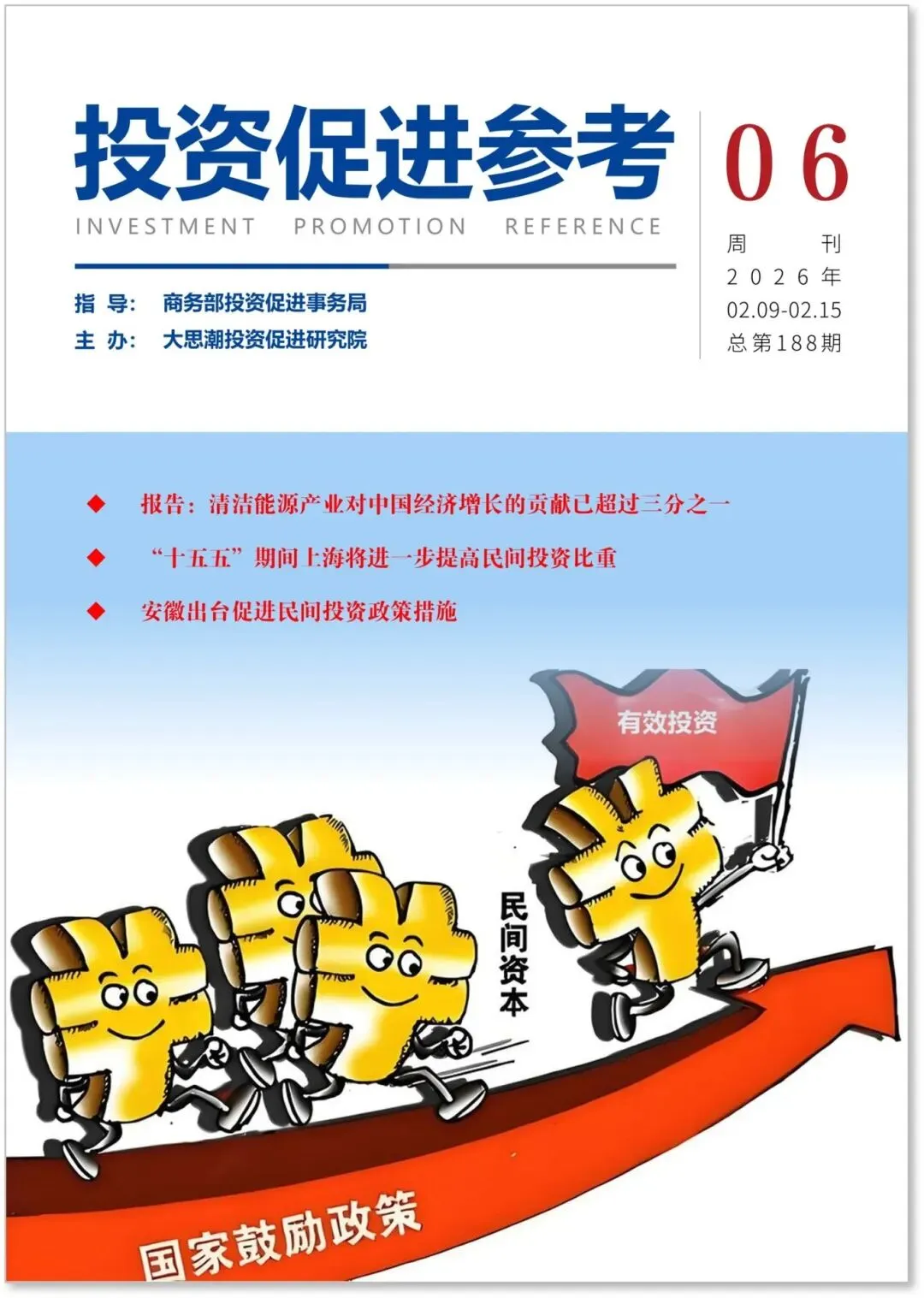 《投资促进参考》是商务部投资促进事务局指导,由大思潮投资促进研究院主办的全国投资促进综合性周刊。该刊设置了8个专栏:“智库观察、投促前沿、投促快讯、基金招商、企业投融资、产业投促、园区投促、投资环境”和1个招商引资政策汇编。面向全国地方政府和投资促进机构、园区(开发区)以及国内外企业(投资人)订阅发行。若有需要订阅,可通过底部订阅方式与编辑部联系。