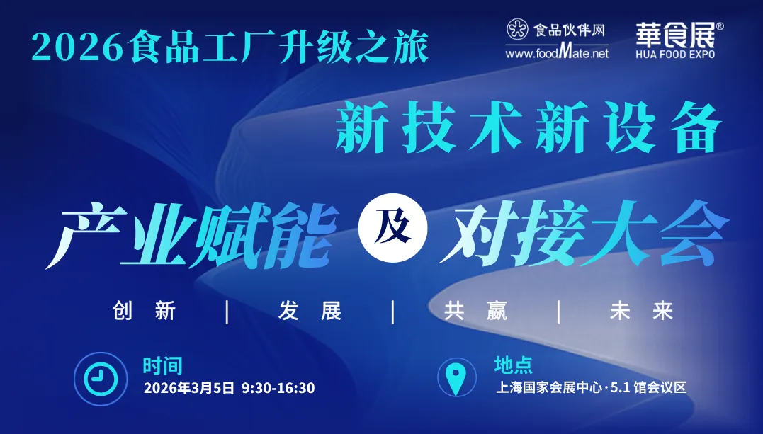 2026食品工厂升级之旅——新技术新设备产业赋能及对接大会:聚焦“食品工业4.0”与“双碳”目标,围绕预制菜、中央厨房、宠物食品等热门赛道,深入探讨智能化改造、绿色装备及高值化加工技术。