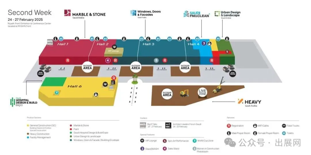 由于沙特建材市场火爆程度超乎寻常,往年展馆不够用,为满足市场的庞大需求,2025年开始,沙特Big5将扩大至四期。