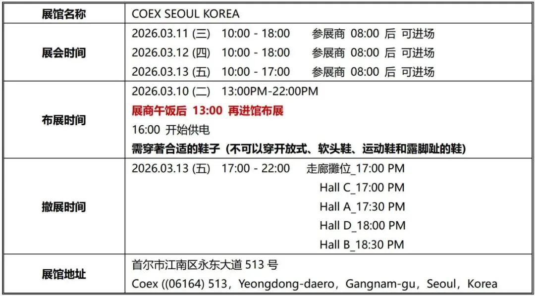 您们好!欢迎参加由我司组织的“2026年3月11-13日年韩国电池展览会InterBattery”,借此机会谨表示我们诚挚的欢迎和问候!为了保证本次展览会成功举行,协助各位圆满完成预期任务,我们特别为您制作了这本出行须知,请您务必花几分钟时间浏览一下这份须知。我们相信您的积极参与必将满载而归。