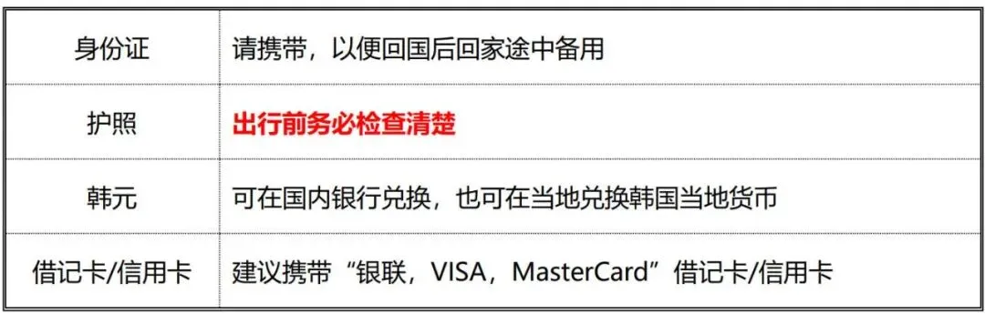 6、药物:请准备惯用药物及紧急医疗用品,以应不时之需。如需长期服用指定药物,出发前宜准备足够份量。由于韩国天气干燥,请团友准备好润肤用品。