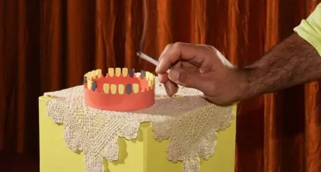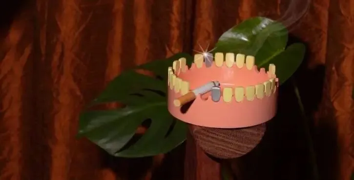 --首先,这件作品以叙事为主导,而非以功能为主导。我们通常被教导形式服从功能,但在这件作品中,故事先于功能而存在。牙齿的解剖结构奠定了故事的基础,功能则由此发展而来,而非单独设计。口腔本身就具有杯状结构——可以容纳和盛放物品——因此烟灰缸的功能几乎是与生俱来的。缺失的牙齿首先让人联想到蛀牙,之后才会意识到它是放置香烟的地方。从这个意义上讲,这种人体工程学设计几乎是偶然的,而这正是设计者的用意。这项功能悄然融入其中,丝毫不会干扰叙事。