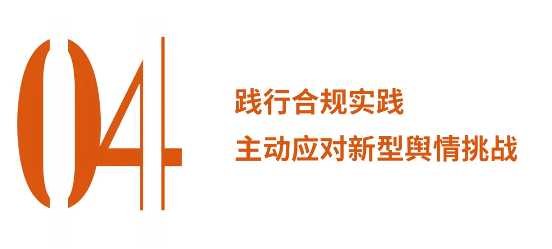 日常经营中的舆情合规管理,远比突发舆情的应对更能体现企业的运营水平。很多企业将舆情应对当作应急工作,却忽略了常态化的风险防控,其实二者相辅相成。企业在面对各类声音时,诚恳担当与严谨审慎并不冲突,正视自身存在的问题,主动改进不足,同时保证每一次发声都符合规范,不夸大、不越界,就能有效避免因回应不当带来的新问题。