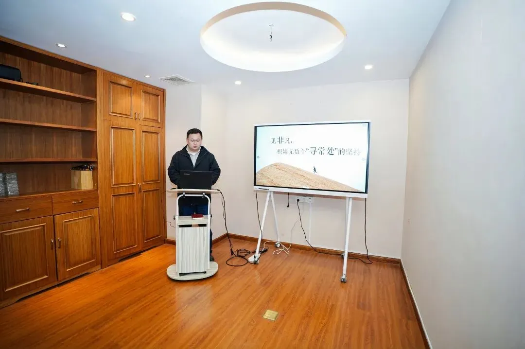 全体鼎洺人齐聚大会议室,开启开工第一站 —— 开工晨会。褪去假期的闲适,大家精神饱满、神采昂扬,海南分公司负责人郭思聪带来新年首期读报分享,为全员明晰新一年的发展方向与前行路径,为新年度工作定下行动基调。