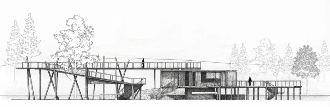 在一公顷重点区域中,进一步引入参数化模型与建筑介入,将建筑视为“干扰过滤器”,通过空间抬升、路径引导与视线控制,重构人类活动与苇莺栖息空间之间的边界关系,实现“可观察而不过度干扰”的使用模式。