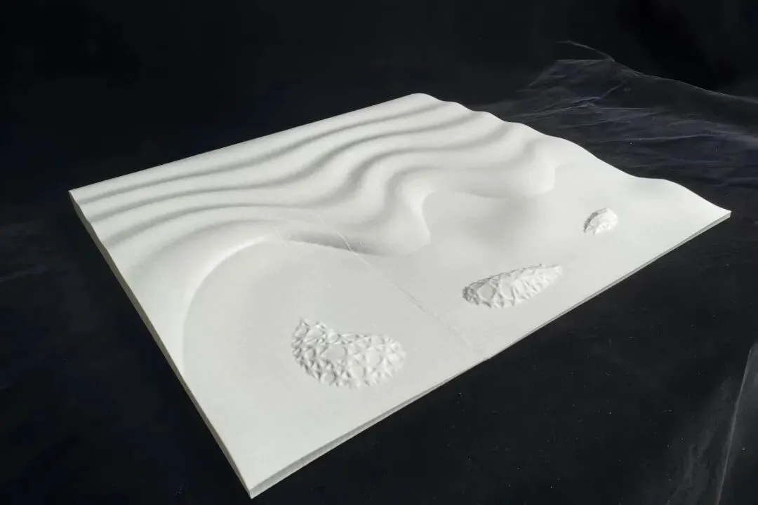 第二环节为1公顷参数化深度设计,学生需依托确定的目标物种习性,运用参数化设计方法开展1公顷核心区域的地形设计,打造生物多样性友好型公园空间;同时采用CNC机床3D打印技术,制作1:200比例的1公顷深度设计模型。