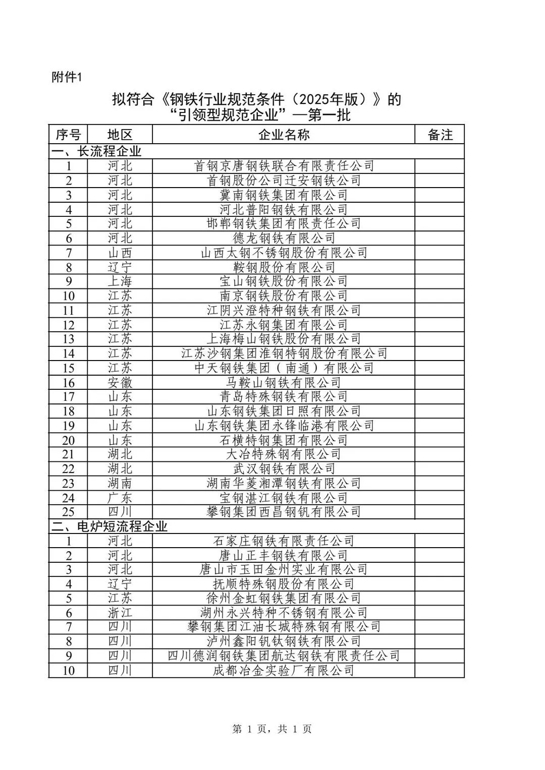1.拟符合《钢铁行业规范条件(2025年版)》的“引领型规范企业”-第一批