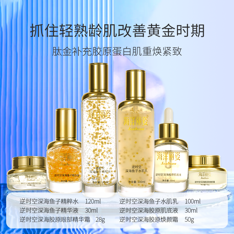 深海鱼子抗皱系列的核心源自深海珍稀鲟鱼子酱提取物,独家专利深海鱼子精华成分,功效创意进阶。