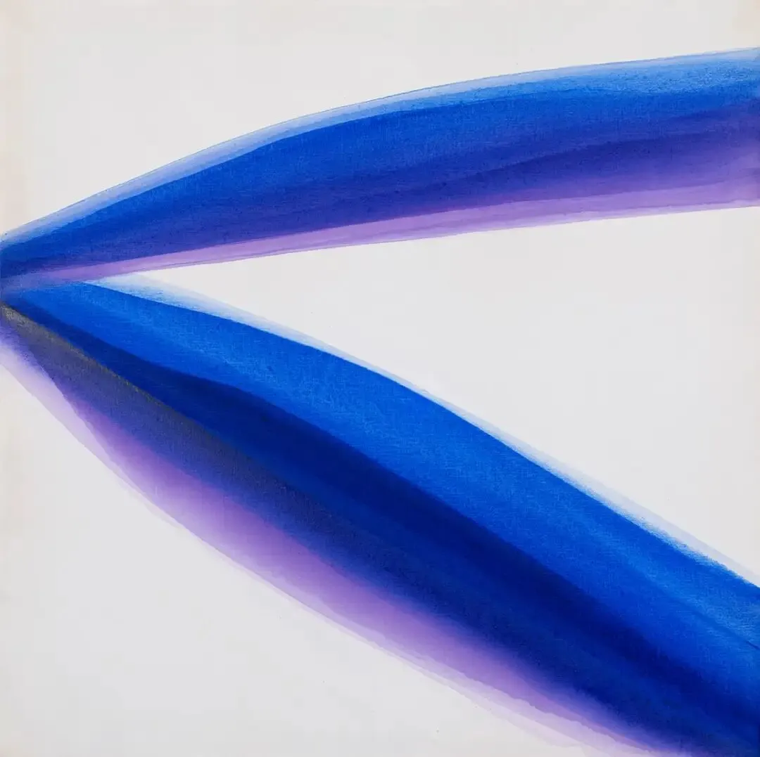 在日本战后艺术的谱系中,福岛秀子(Hideko Fukushima,1927-1997)是一位至关重要却未被重视的艺术家。1951年,她联合创办了“实验工房”(Jikken Kōbō),这是当时日本最具前卫性的艺术团体之一,其14名成员致力于跨学科合作,并将新技术融入日本传统艺术与手工艺。1957年,法国评论家兼艺术家米歇尔·塔皮耶(Michel Tapié)在日本观赏到她的作品后,将她引荐给了法国的不定形艺术(Art Informel)艺术家。福岛秀子的创作横跨绘画、声音、诗歌和舞台设计,试图超越媒介的边界。纵观其职业生涯,她对蓝色和圆形的偏爱贯穿始终,常常将其盖印在画布或纸上,这种被称为“型押し”(kataoshi)的技法,与同时期男性抽象表现主义(Abstract Expressionist)艺术家奔放的笔触形成鲜明对比。进入20世纪70年代末及80年代初,她的视觉语言逐渐转向了色域绘画。东京Standing Pine艺廊将展出她这一时期的蓝色作品系列,如《Whither Blue(VII)》(1982)。这幅1米×1米的作品,以近乎克莱因蓝的钴蓝色调,通过斜向的笔触在画布上铺展开来。