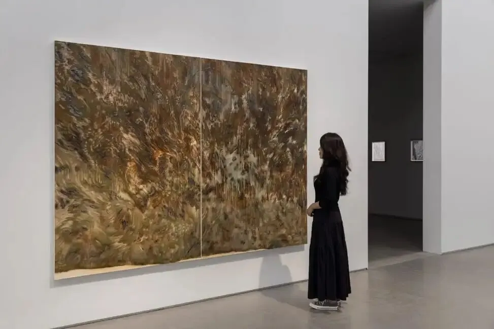 在此次展览中,首尔的Sun Gallery精心呈献了她20世纪80年代和90年代的作品,这些作品皆以滚筒与刮刀为主要工具,在画布上反复堆叠颜料,复又刮除,从而在厚重且多以大地色系为主的基底上,刻画出纹理分明的条纹与网格。在20世纪90年代,她更将书法元素融入底层颜料的肌理之中,运用调色刀细腻地刮刻出“有志者,事竟成”等格言。在一个由李禹焕(Lee Ufan)等男性艺术家主导且推崇克制手法的艺术流派中,李正枝作品中的重复性本质上并非劳作,而是一种坚韧不拔的意志,甚至是一种反叛的姿态。