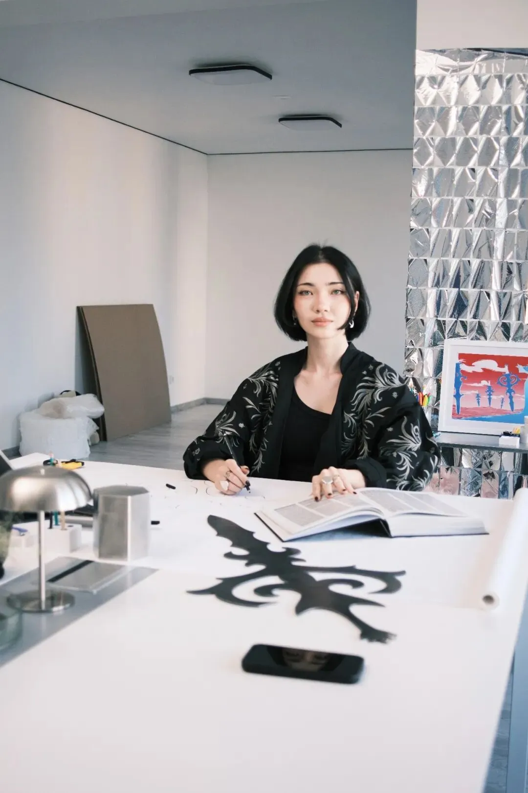 Aya Shalkar正创作《Aiqoshqar: Ramshead of the Moon》,图片由艺术家及Sapar Contemporary提供