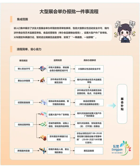 让数据多跑路,让企业少跑腿。此次大型展会举办报批“一件事”一站式线上服务专区的上线,是东莞深化政务服务改革、优化营商环境的具体举措,更是立足“制造+会展”融合发展路径、助力会展业高质量发展的生动实践。未来,东莞将持续以企业需求为导向,不断深化“高效办成一件事”改革,打造更优质、更便捷、更高效的办展政务服务环境,让企业轻装上阵办展会,进一步擦亮“制造美学之城”产业名片,推动“制造+会展”融合发展迈上新台阶。