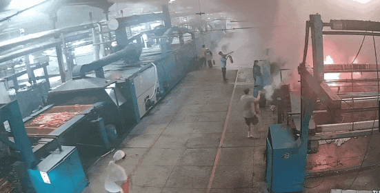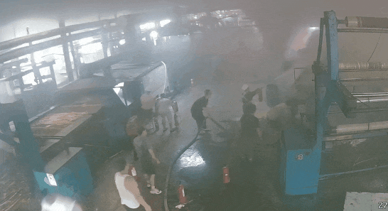 其中一名职工迅速跑向电闸,切断了定型机器的电源,防止火势因电路问题进一步扩大。