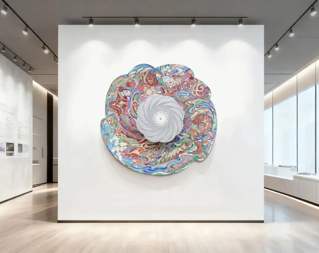 与第一届壁画展相比,本届展览在壁画语言与材料表达上的多样性、丰富性与可读性均明显提升。创作者们或解构重组传统意象,或融入新的媒介与观念,或回应当下的文化命题与社会思考,使古老的壁画基因在新的语境下焕发出蓬勃的生命力。壁画展是直观呈现艺术家壁画创作水平的重要舞台,既包括真实公共空间中的壁画创作,也涵盖艺术家个人风格化的实验性作品。实验性壁画要求作者模拟真实空间环境,将作品“植入”公共空间之中,以突出壁画与环境、建筑的关系,使其成为公共场景中的绘画,而不是纯粹的自由绘画或个人心性的释放。本届展览中的实验性壁画作品,正是在此方向上的积极探索,以多样的材料语言与观念实践回应当下语境,为壁画艺术的未来提供了新的可能。壁画的属性及其与其他画种的界定仍需进一步讨论,虽无绝对标准,但壁画一定是有边界的。壁画是一个“超级画种”,涵盖不同材料、方法与观念,融通百艺,海纳百川。在边界中实现创造,这是壁画艺术尤为动人的特质,也是历代壁画创作能够延续至今的重要原因。