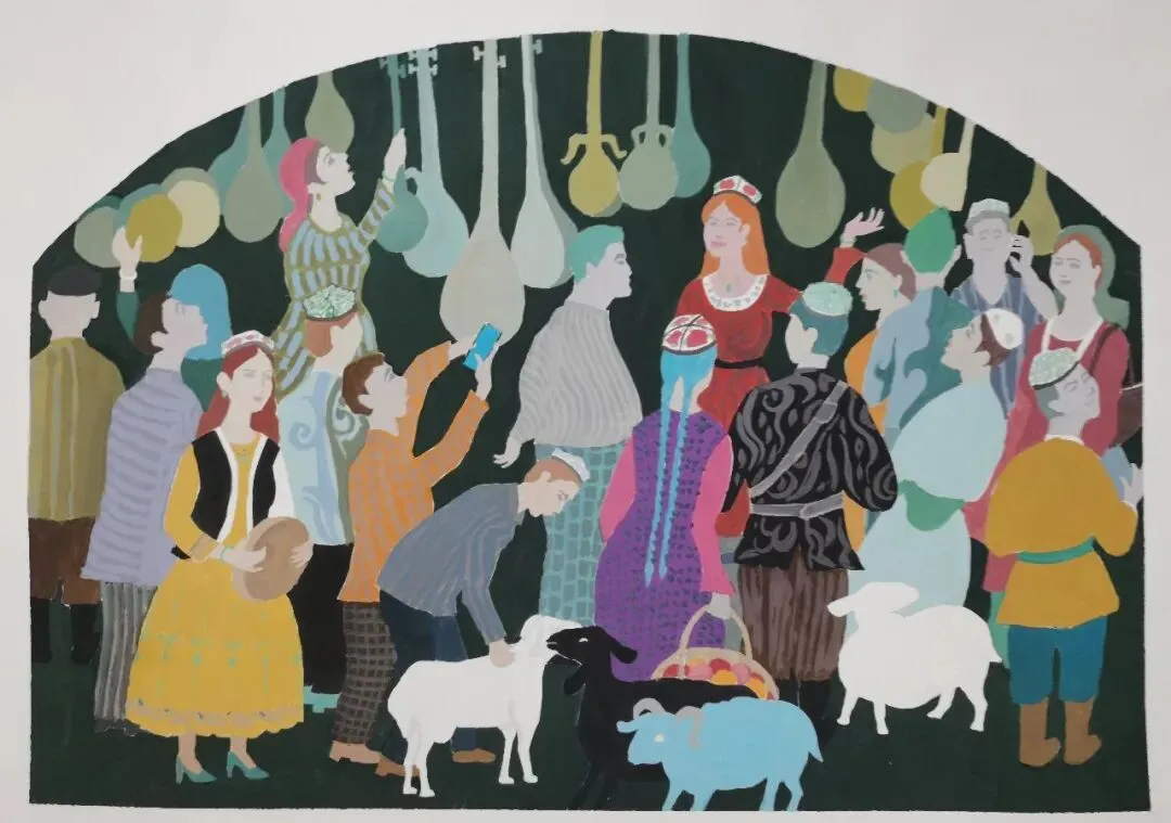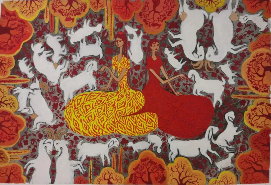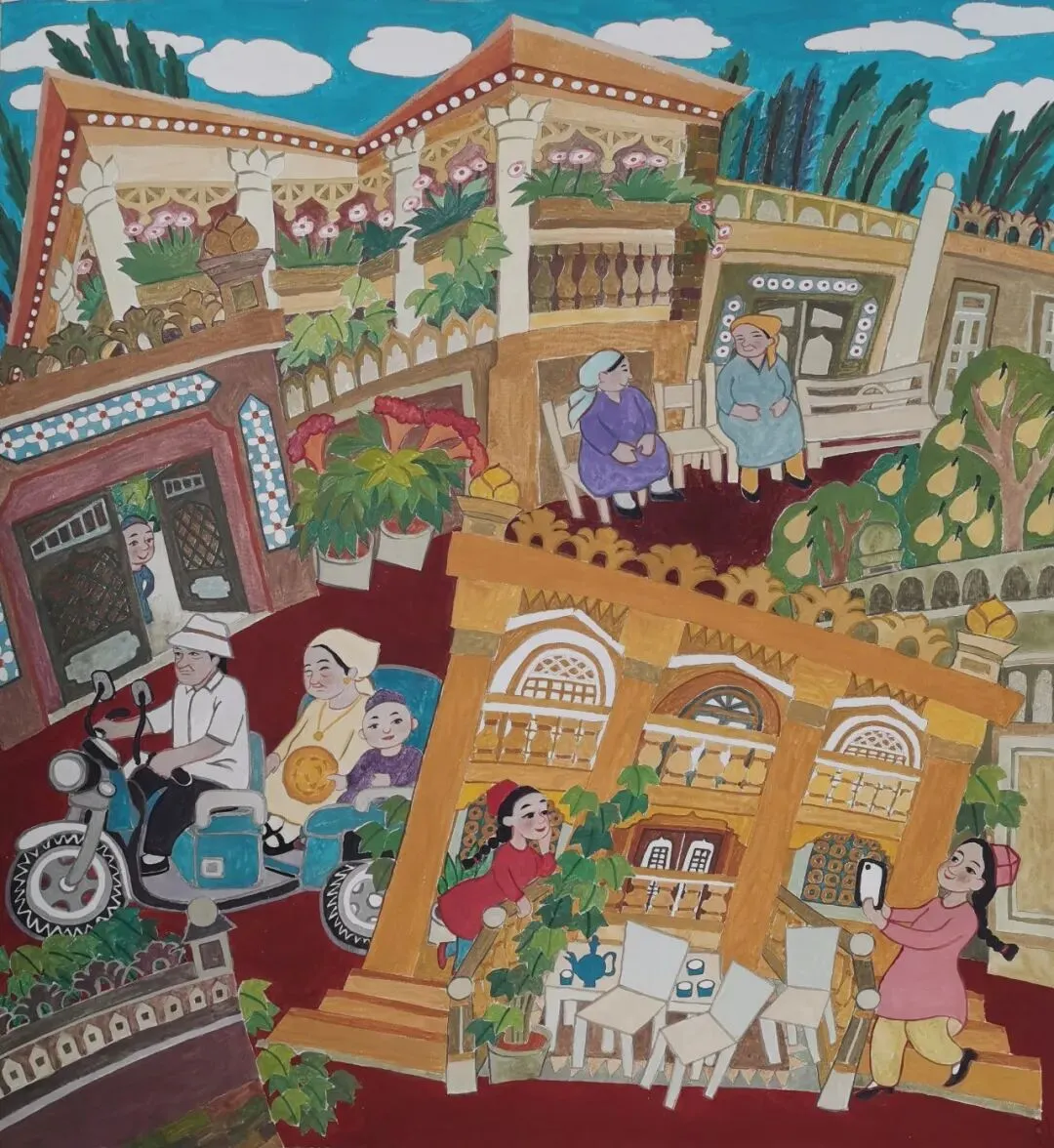 今天,在乡村振兴的时代号角里,农民画迎来了又一次“破土”。内蒙古自治区文化馆、浙江省文化馆、山东省文化馆、重庆市群众艺术馆、贵州省文化馆、新疆维吾尔自治区文化馆六家省级“文化会客厅”携手联动,策划“艺术点亮乡村——首届‘农民画’省际交流活动”。展览收到六省(区、市)数百位农民画作者投稿178幅,遴选120 幅精品集中呈现。它们带着泥土的芬芳、海风的咸鲜、高原的旷远、水乡的温润,共同拼贴出一幅“万里河山即画布”的当代《耕织图》。