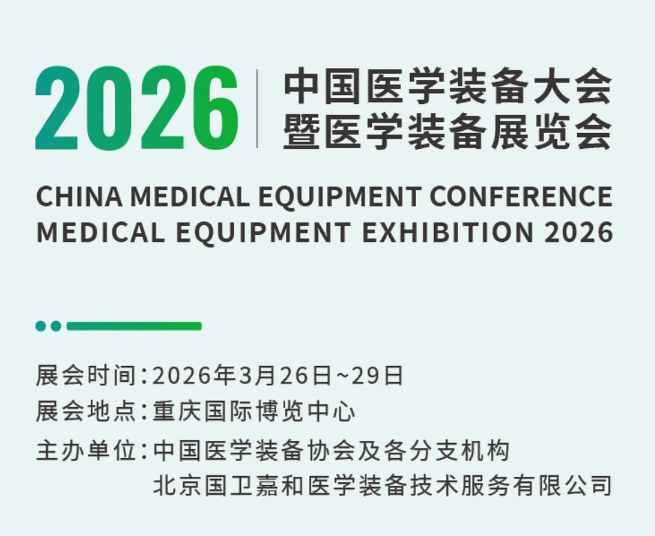 2026中国医学装备大会暨医学装备展览会将于2026年3月26-29日在重庆国际博览中心(悦来)举办。本届大会由中国医学装备协会及各分支机构主办,聚焦医学装备领域“学术研讨+展览展示+成果发布+创新赛事+国际交流”多维联动,搭建政策信息传递、专业经验交流、创新产品展示与技术趋势发布的重要平台,持续推动医学装备技术创新、产业升级与临床应用。✅ 规模亮点(规划):30000+行业专家、60000+专业观众、180+学术会议、800+参展企业、500+创新产品