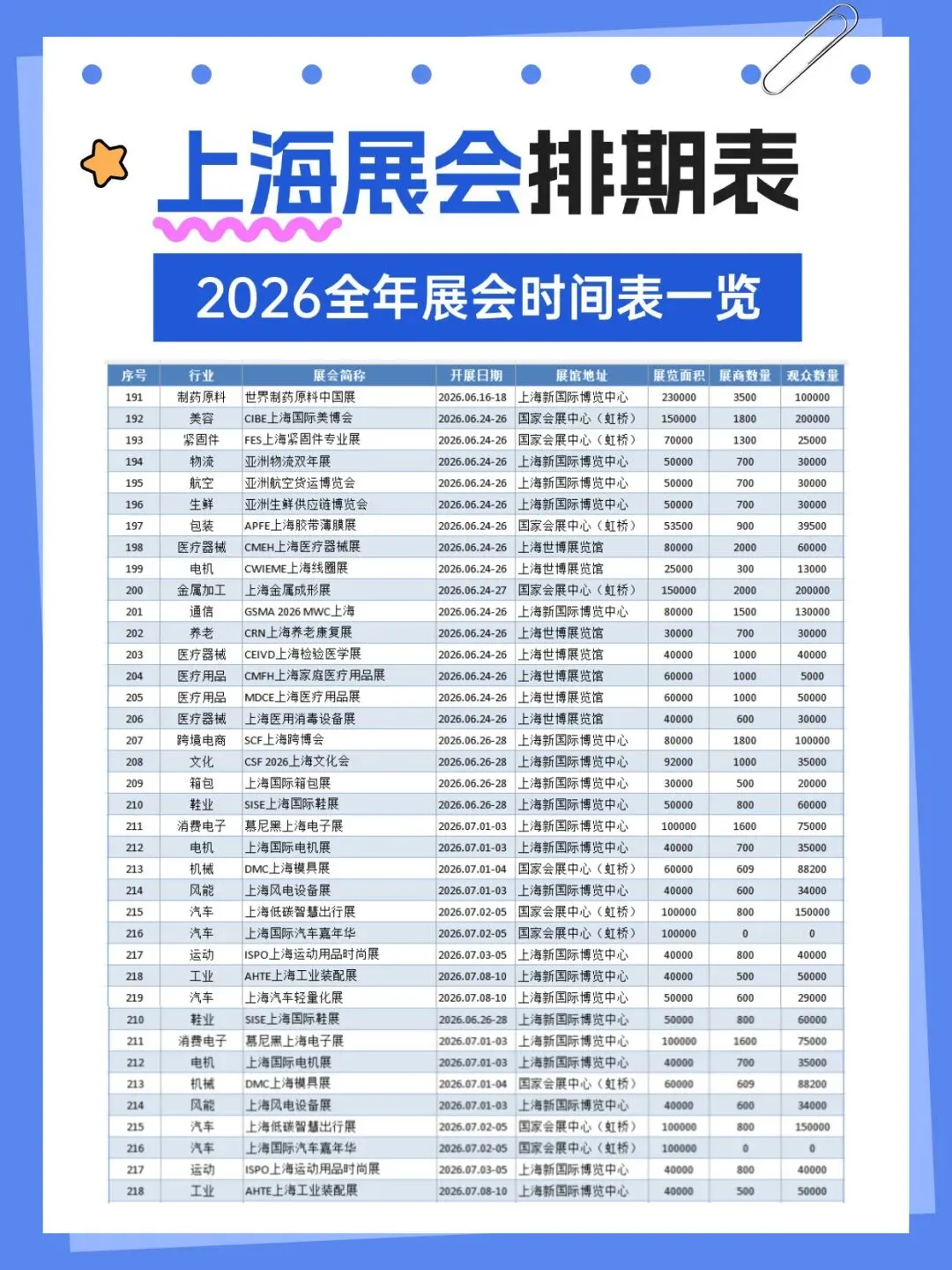 上海展会2026时间表(地点+门票)