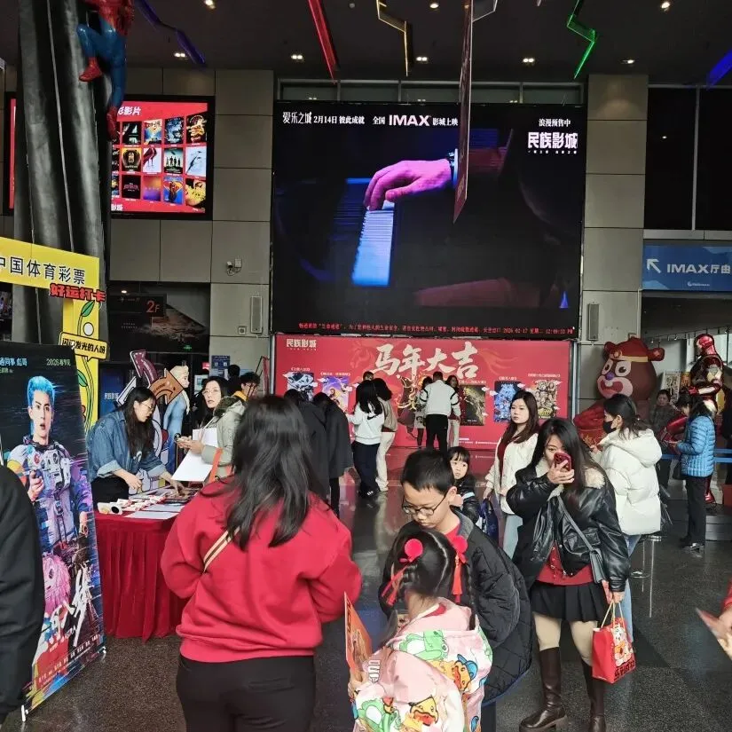 民族影城四店联动,抢抓春节档黄金机遇,推出限量周边、会员充值福利、套圈抽奖等互动活动,围绕《飞驰人生3》《镖人》《惊蛰无声》等热门影片打造沉浸式观影体验。2月15日至23日,四店累计实现票房总收入约196万元,接待人数超4万人,假期观影氛围热烈。同时,影城积极参与会展中心良牙2026冬季漫展,通过品牌展位、互动打卡、拉新送观影券等方式,精准触达数万年轻客群,实现品牌曝光与用户增长双突破。