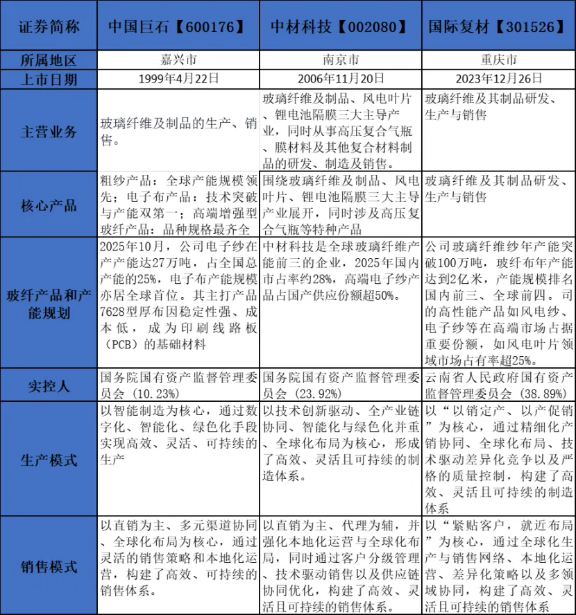 主营业务对比:中国巨石VS中材科技VS国际复材