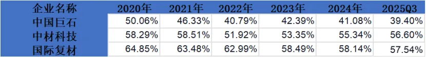 三家企业的资产负债率都具有一定的稳定性,但中国巨石的波动相对更小,说明其在债务管理策略上可能更为稳健和灵活,能够更好地应对市场变化和经营风险;国际复材和中材科技虽然也保持相对稳定,但较高的负债水平使其在面临市场波动时可能面临更大的财务压力。