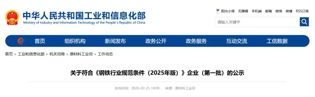 根据《钢铁行业规范条件(2025年版)》(工业和信息化部公告2025年第1号,以下简称《规范条件》)有关要求,现将拟符合《规范条件》的企业(第一批),予以公示。如有异议,请在公示期内与我们联系,并提交相关证明材料。