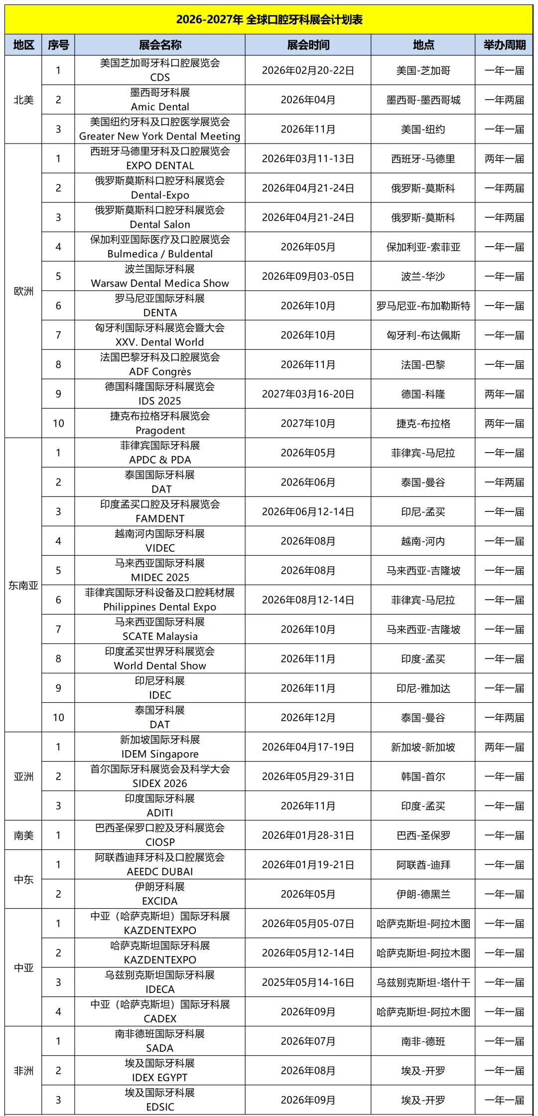 2026-2027年全球牙科展会计划表