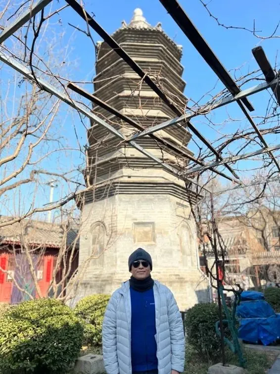 作者在萬松老人塔前
