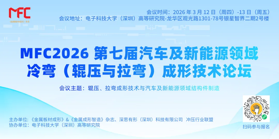 MFC 第七届汽车及新能源领域冷弯(辊压与拉弯)成形技术论坛,2026 年 3 月 12 日 —13 日将在深圳举办,聚焦超高强钢成型、自动化产线、激光焊接与质量控制,共话行业未来。