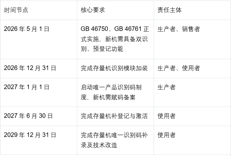 身份可追溯是近年强制国标的核心导向,形成“实名登记-实时识别-唯一码”的闭环管理,企业需在生产环节提前植入相关功能。