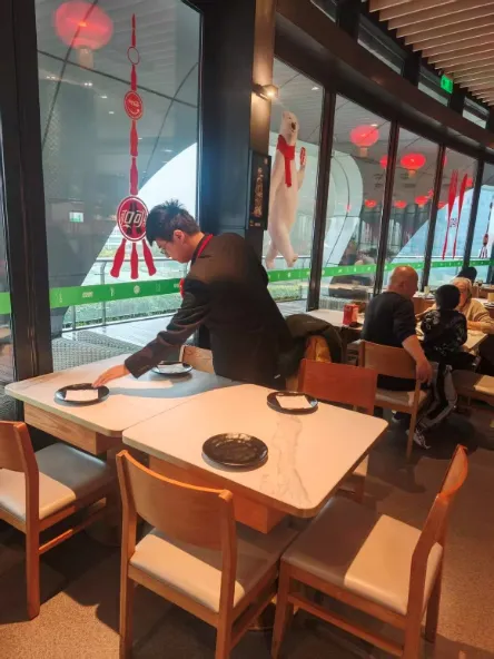 入驻东方明珠塔内主题餐厅的三名同学,直面高客流、高流转率的地标餐饮运营环境,扎根一线服务岗位展开数月实操历练。他们的工作覆盖前厅客户引导、点餐配餐服务、用餐区即时响应及突发状况处理等多个环节,沉浸式体验标准化的餐饮服务全流程。从迎宾入座的细节礼仪,到餐品呈现的精准把控,从席间的主动服务到送客离席的后续整理,同学们在日复一日的实操中,系统掌握了标准化服务流程的执行要领,形成了完整的服务闭环思维。高强度、高标准的工作场景,不仅是对会展专业服务管理知识的实战检验,更让同学们在快速响应、高效协作中,逐步培养起职业化的服务意识、抗压能力与团队配合能力,练就了文旅服务一线的硬本领。