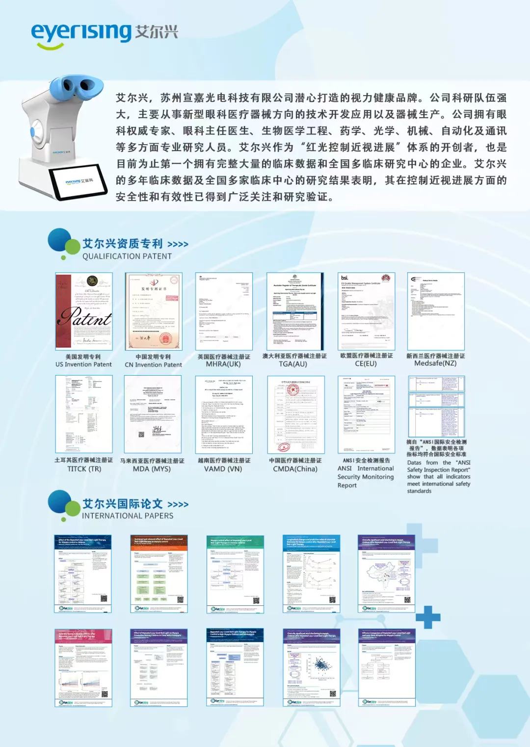 我们将在现场呈现以650nm重复低强度红光技术(RLRL)为核心的系列防控解决方案,并分享我们在真实世界研究论文&近视防控数据,包含多篇重磅论文登载于《Ophthalmology》、《American Journal of Ophthalmology》等国际权威期刊,红光国际认证(ANSI、ARTG、CFDA、BSI等)及青少年视力防控实践中的最新进展、真实家庭的使用反馈等。