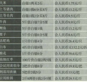 明朝米价在洪武二十八年以后基本上一两银子可以购大米二石。明代一石约等于现在的94.4公斤。按21世纪初大米均价1.75元/斤计算,明代一两白银折合人民币为660.8元。